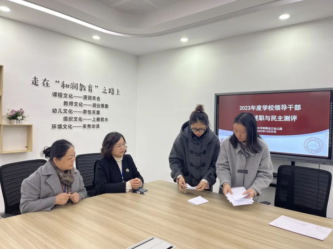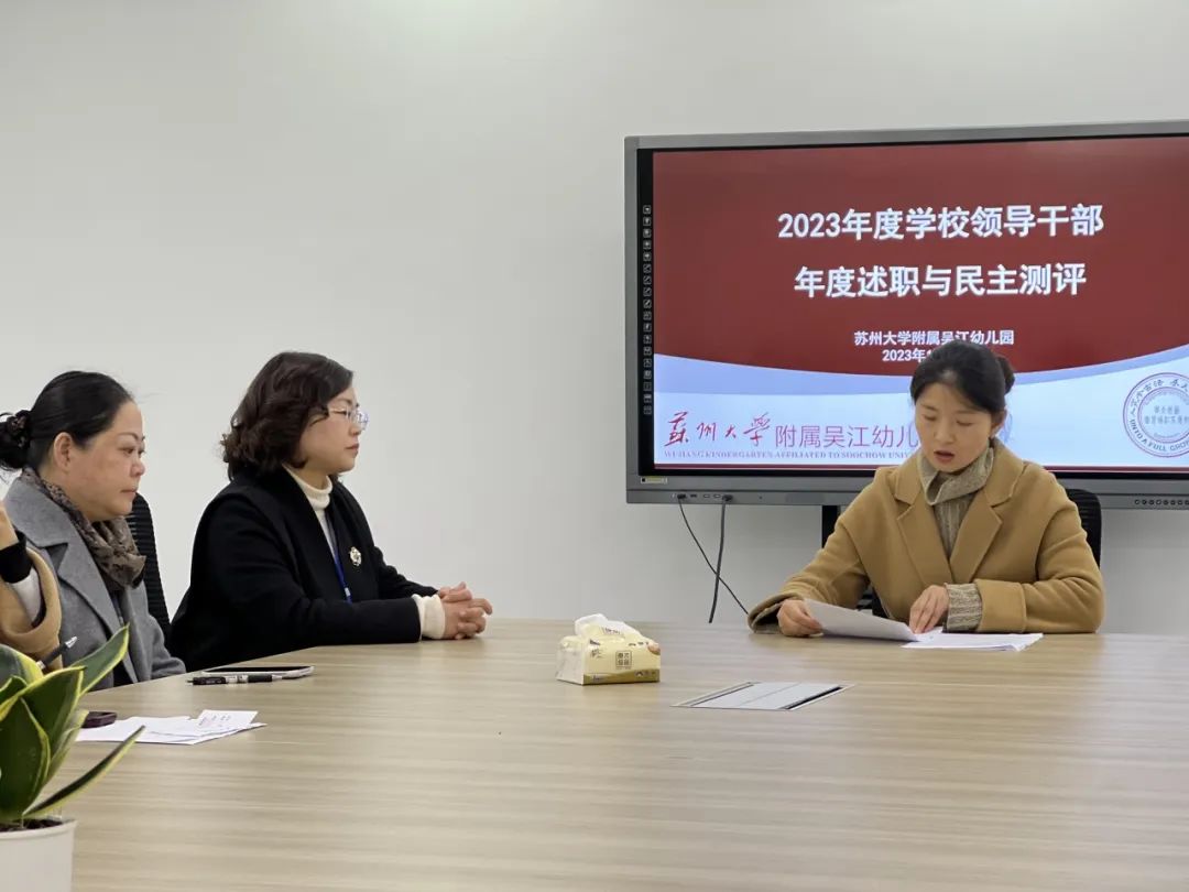 2023年12月29日下午,吴江区责任督学吕淑萍、张利妹两位园长莅临苏州大学附属吴江幼儿园,对我园的食品安全、卫生保健、校园安全及学校领导干部年度述职与民主测评等工作进行专项督察。
