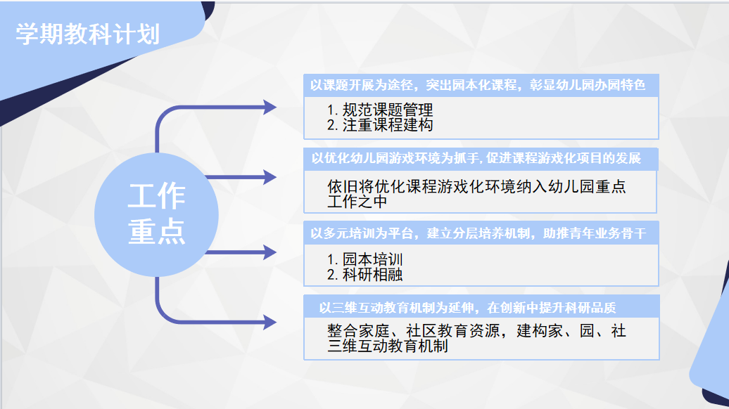 本次期初教科工作会议进一步明确了我园新学期教科研的工作目标和重点内容,各课题组及老师们将以合作共进为意识导向,携手同心,砥砺前行。