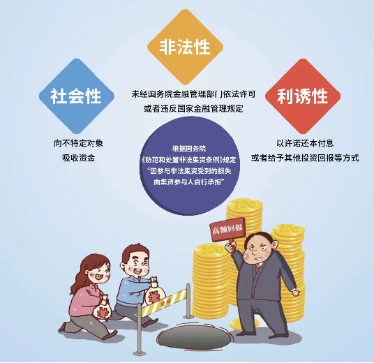 非法集资行为需同时具备三要件:一是“未经国务院金融管理部门依法许可或者违反国家金融管理规定”,即非法性;二是“许诺还本付息或者给予其他投资回报”,即利诱性;三是“向不特定对象吸收资金”,即社会性。