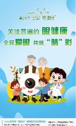 2024年6月6日是第29个全国“爱眼日”,今年的宣传主题是“关注普遍的眼健康”。为了保护眼睛健康,形成良好的用眼习惯,提升爱眼护眼意识,请大家一起来学一学这些小知识吧!