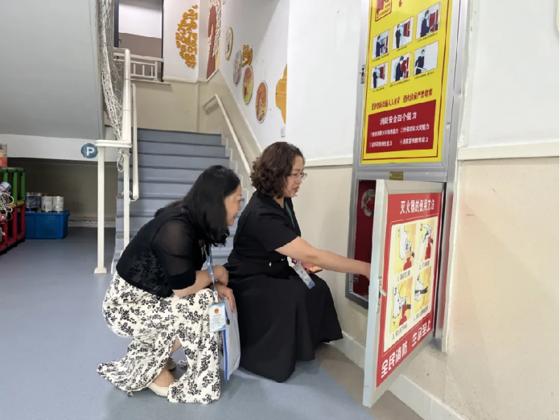 两位督导走进食堂,查看和询问了食堂的日常管理工作,翻阅了食堂的台账资料,了解食堂的出入库管理、账目管理等制度落实情况。两位督导对我园食堂的规范管理给与了肯定。随后督导巡检幼儿园安全工作,查看幼儿园消防设施和户外设施设备。