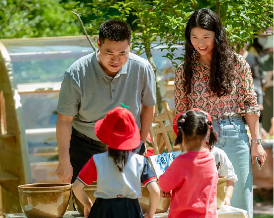 本次户外游戏以“幼小衔接”、“禾禾水世界”、“夏天”三大主题展开,充分利用户外空间与资源,为幼儿打造了一个自主、联动、有趣的户外游戏场。户外游戏观摩后,8所幼儿园的教师代表分享了各园在户外环境创设中的思考与经验。与会教师分为三组,结合自己对户外游戏的观察情况进行热烈讨论,为幼儿园户外环境创设与活动实施拓宽了新思路。
