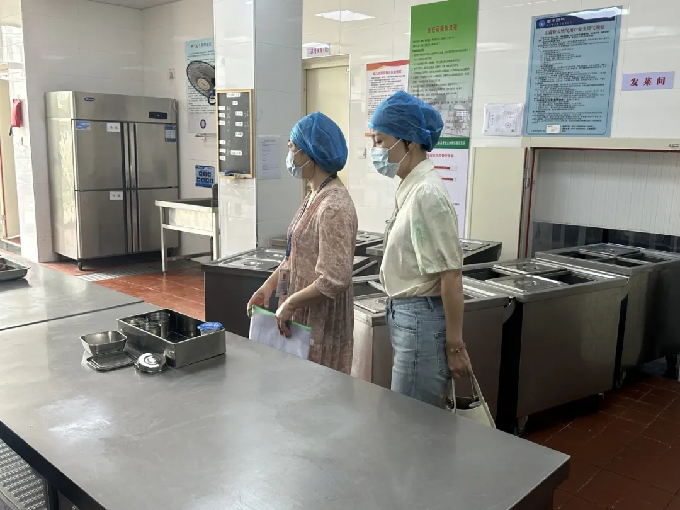 两位督导首先查看了我园校园环境,督导们走进食堂,以严谨认真的态度进行了全面细致的检查,进一步了解了我园的食堂六化工作、食堂安全卫生工作的落实情况。