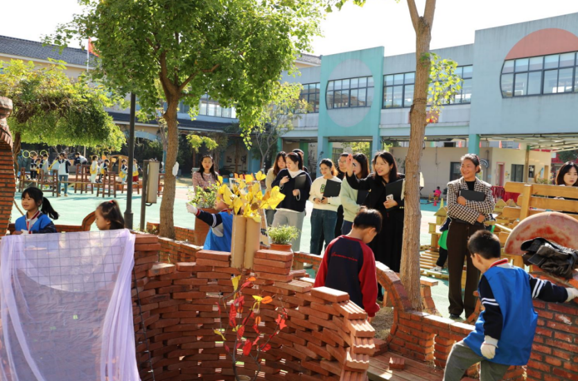 在行政组的陪同下,家委会成员走进游戏现场,观摩幼儿游戏,了解幼儿在园生活情况,在亲临现场中感受幼儿愉悦自信,自由自主的精神风貌。