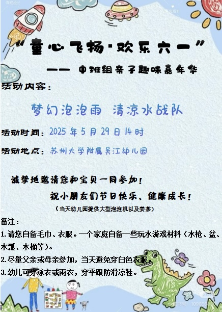 今年六一儿童节,小班和中班的孩子们将共同开启一场疯狂又清凉的戏水嘉年华!