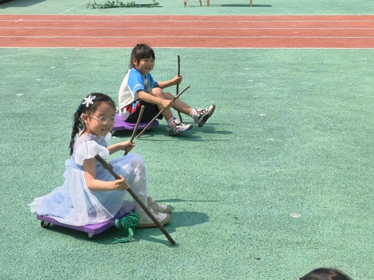 “咚咚锵!加油呀!”粽叶飘香时,一场热热闹闹的端午游园会开始啦!旱地赛龙舟、划桨过河、射五毒、夹粽子、包粽子……在多彩的游园活动中感受传统文化的魅力,在游戏中解锁非遗文化的欢乐密码!