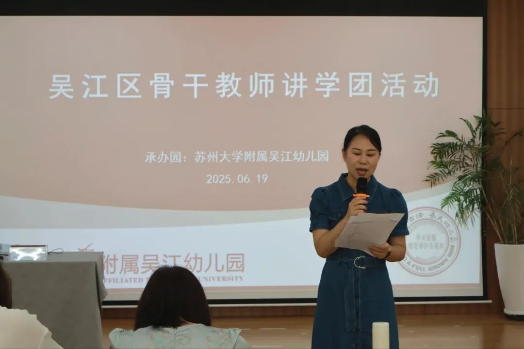 高山仰止,方知才疏,三人同行,觉左右为师。为充分发挥骨干教师的示范和辐射作用,促进思维碰撞,共享教育经验, 2025年6月19日,由吴江区教师发展中心主办的2025年(上)幼儿园骨干教师讲学团活动(松陵片)在苏州大学附属吴江幼儿园举行,共有40余位园长、教师参与本次活动。