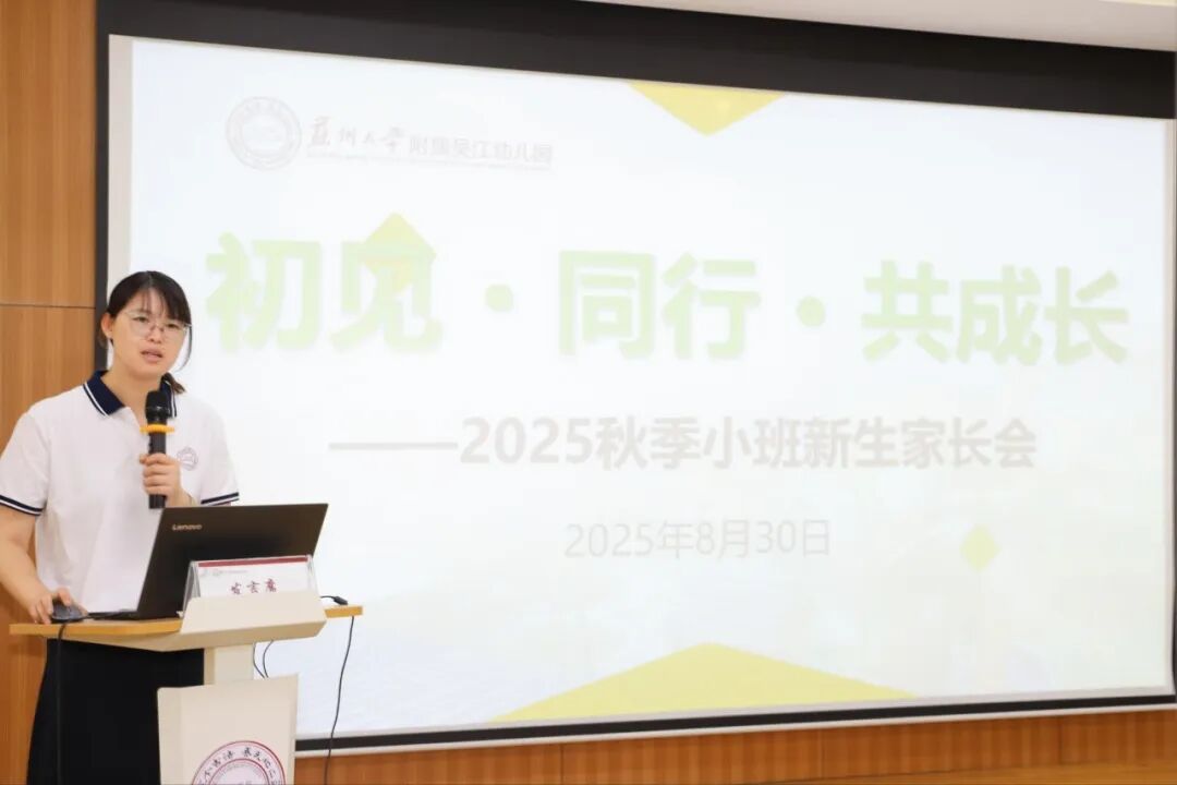 会议伊始,沈兰园长首先对全体家长的到来表示热烈欢迎。并从幼儿园的教育理念、园所环境和师资队伍三方面切入,帮助家长全面了解园所整体情况,建立信任基础。随后,园长着重强调了家园合作在幼儿成长过程中的重要性,呼吁家长与幼儿园保持密切沟通、协同配合,共同促进幼儿健康发展。最后,她也向小班新生表达了温暖的欢迎与诚挚的祝福,寄托了对孩子们快乐成长、美好未来的殷切期望。
