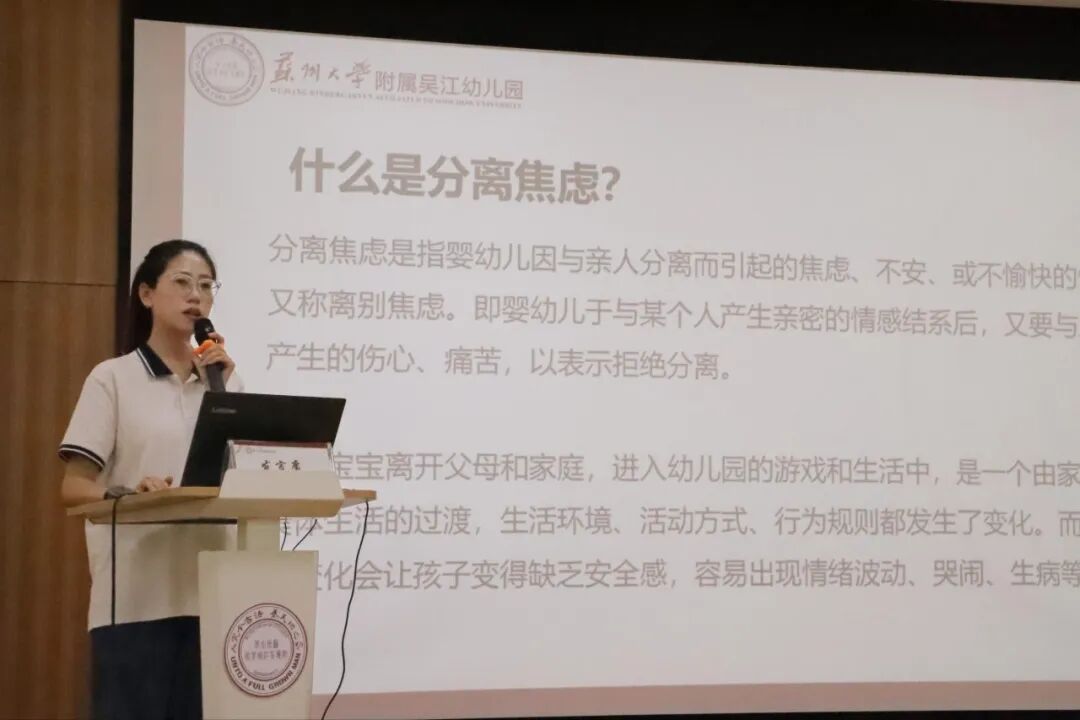 最后,针对新生入园可能出现的分离焦虑、生活自理能力不足等问题,保教处姚斯雯主任向家长们分享了缓解分离焦虑的实用策略,让家长们对孩子的入园适应多了一份从容。