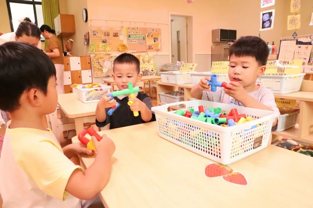 和新朋友凑在一起,像开启“欢乐开关”!抢着分享玩具、叽叽喳喳玩游戏,小教室秒变“快乐星球”,笑声蹦跶着填满每个角落,陌生感“咻”地溜走啦。