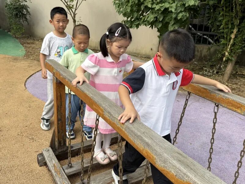 大班的孩子们运动能力也在不断提高,他们勇敢挑战,享受着攀登的乐趣。