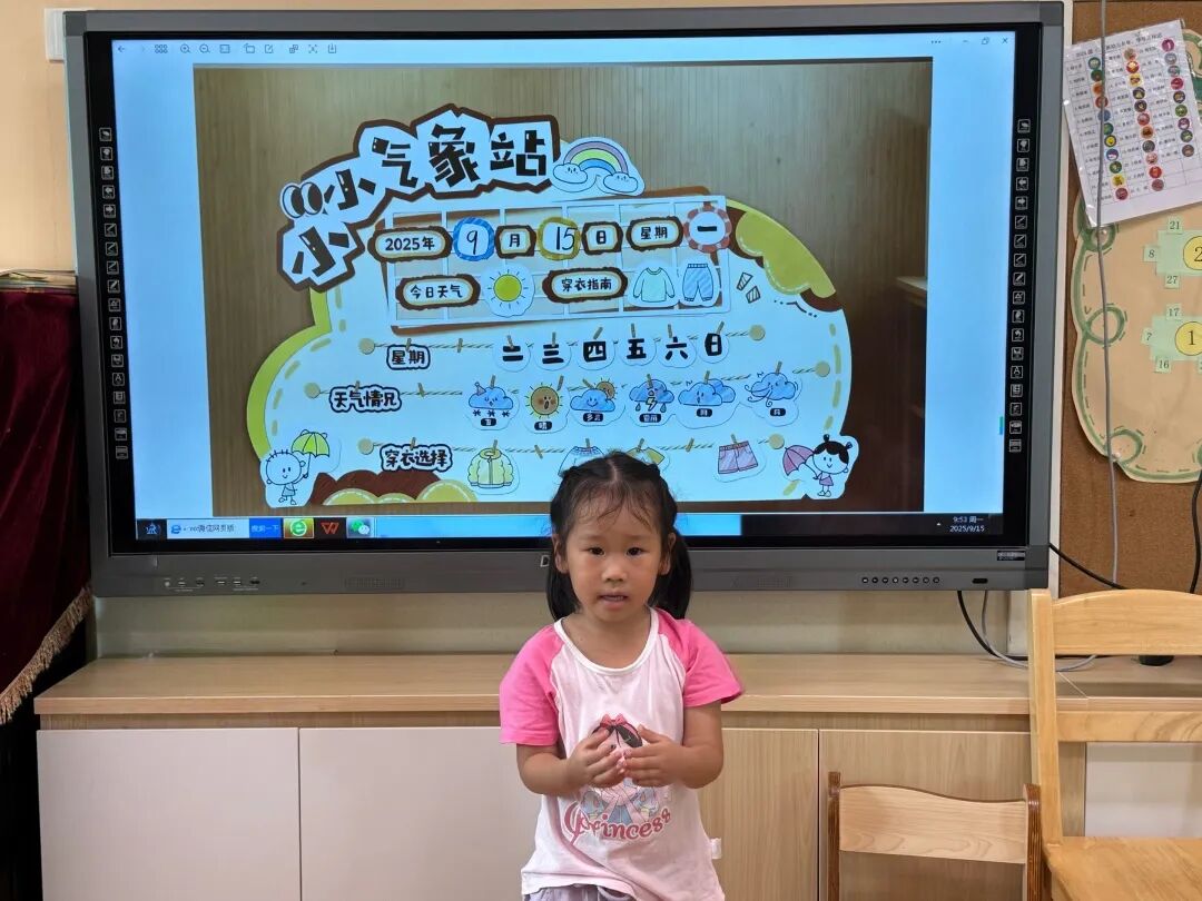用清晰的语言播报天气与餐点,孩子们在角色中学会完整、规范地表达。
