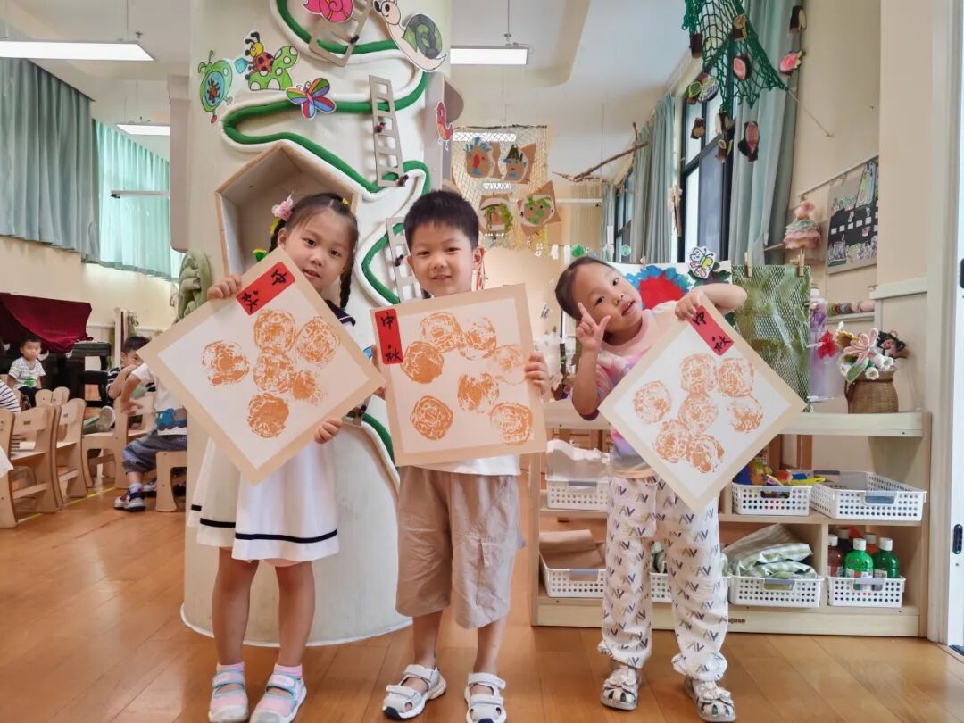 当传统技艺遇上童心,会碰撞出什么火花?中二班的宝宝们用月饼模具蘸上颜料,在纸上拓印出精美的图案,亲身感受非遗的魅力。
