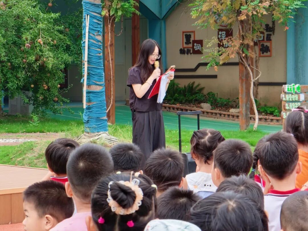 在周一的升旗仪式下,老师化身“粮食科普员”,用生动有趣的语言将粮食小知识娓娓道来。老师们还给孩子们分享《饭菜不是用来浪费的》、《每一粒米都有故事》等绘本故事,告诉孩子们:每一粒粮食都要经历播种、生长、收割等好多步骤,才能变成餐桌上的饭菜。“原来我们吃的米饭,是从田里长出来的呀!”、“农民伯伯好辛苦,我以后不剩饭啦!”孩子们的童言稚语,满是对粮食的敬畏。