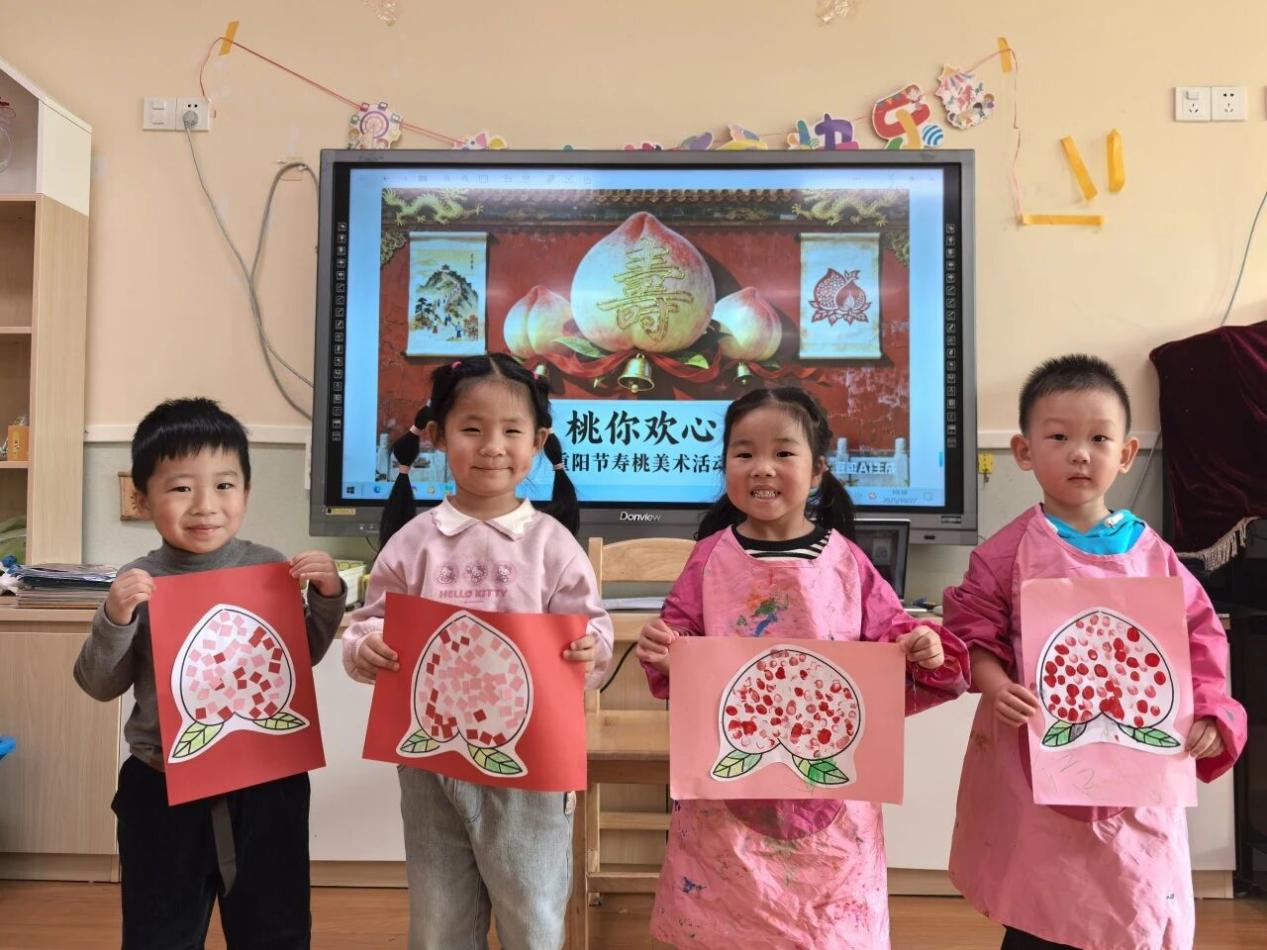 孩子们亲手制作的寿桃手工作品,虽然带着稚气的痕迹,却满载着“祝您健康长寿”的美好心意。