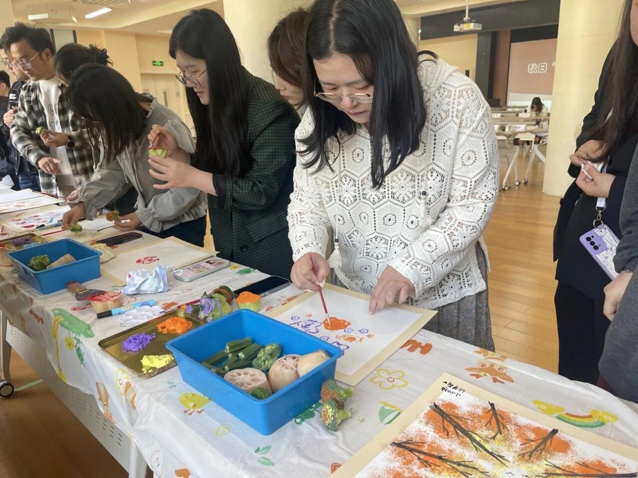 观摩后,家委们移步室内,并利用秋日蔬果进行了创意果蔬拓印。在简单的自我介绍后,沈兰园长为家委会成员们颁发聘书,大家一起合影留念。