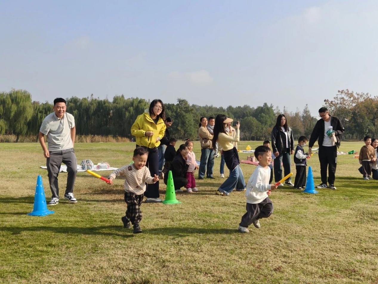 大草坪瞬间变成了欢乐的海洋,三个班级的特色亲子运动同步展开,欢笑声、喝彩声此起彼伏。