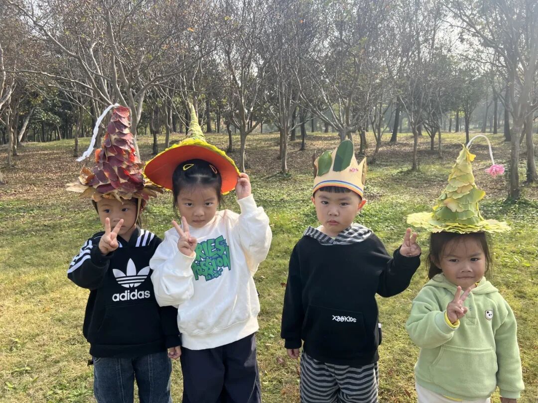 小一班的树叶帽子创意十足。枫叶、银杏叶经过粘贴拼摆,变成独一无二的秋日头饰,宝贝们戴上后瞬间变身“秋日小精灵”。