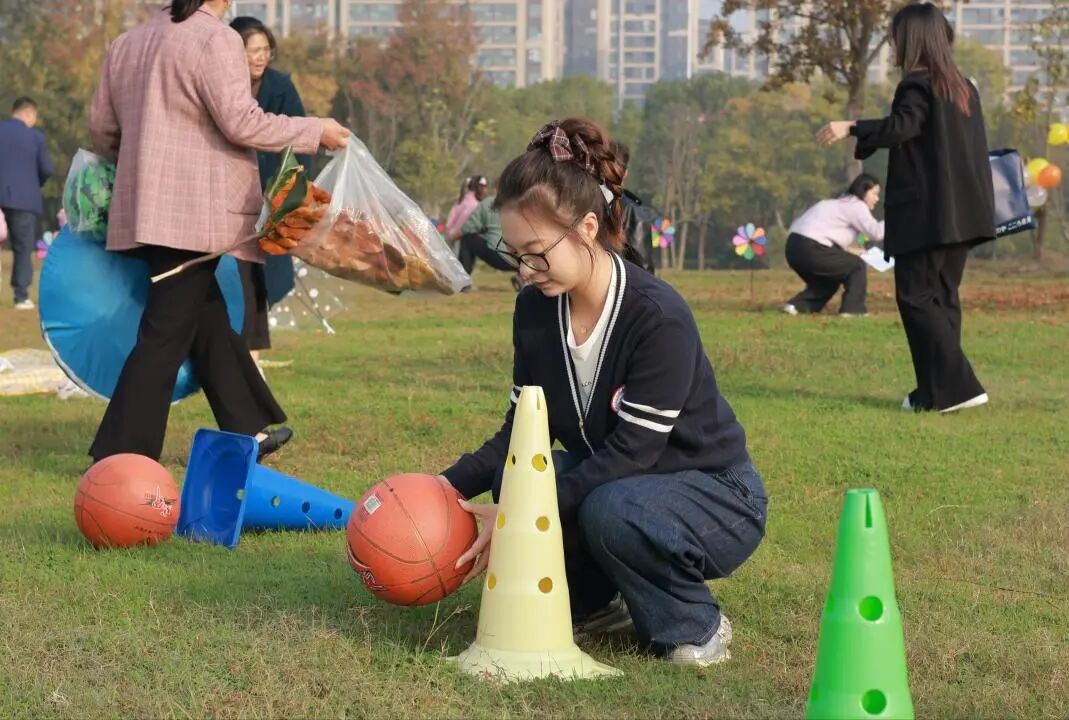 老师们早早来到现场布置,气球轻摇,风车转动,三位家长志愿者也提前到场协助。随着家长与孩子们陆续抵达,草坪上渐渐充满了期待的氛围。
