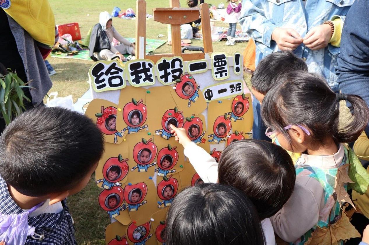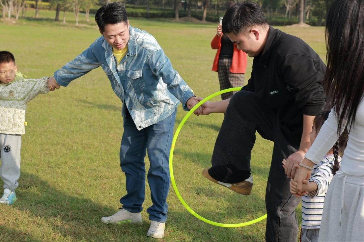 集体游戏环节中,中一班《一圈到底》考验亲子默契;中二班《运秋果》需稳稳托球行走;中三班《两人三足》更是笑声不断。大小朋友们携手合作,在游戏中拉近了距离。