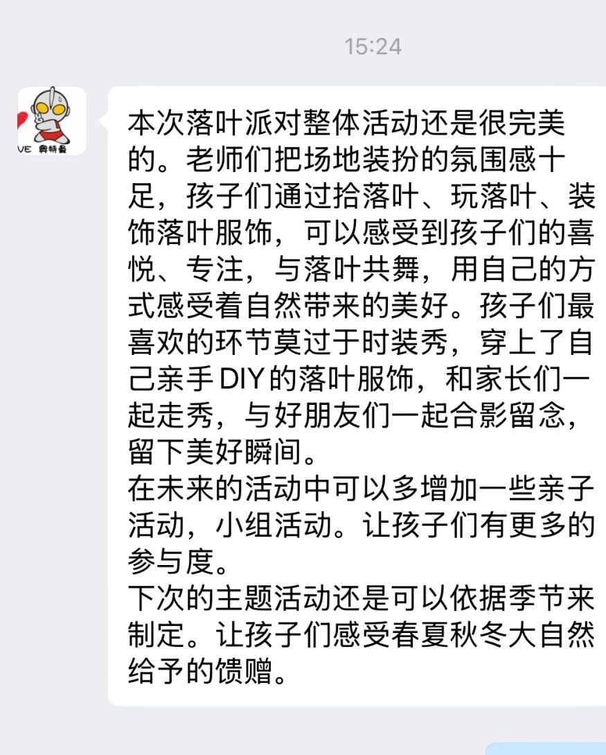 欢声笑语之后,满满的感动仍在延续。家长们纷纷用真挚的文字记录了本次活动的感受与收获,为这个秋日午后添上了又一笔温暖的注脚。